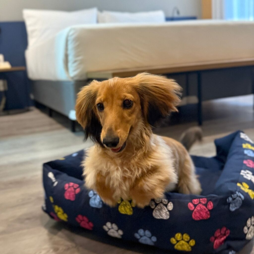 01 cama king size, piso de madeira, banheiro com secador de cabelo, espelho de aumento, ducha higiênica e chuveiro com box, tábua e ferro de passar roupa, ar‑condicionado independente com controle remoto, cafeteira elétrica, SmarTV de 50″ com diversos canais, Wi‑Fi gratuito, cofre eletrônico que comporta notebook, minibar, poltrona, mesa de trabalho com cadeira ergométrica, cortinas tipo blackout e tomadas de 220V.